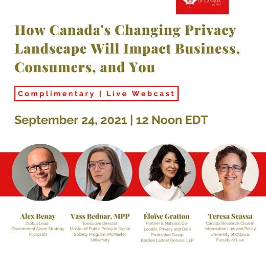 I’ll also be speaking on a panel about the business implications of changing privacy legislation later this month c/o the Empire Club.