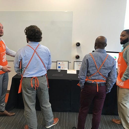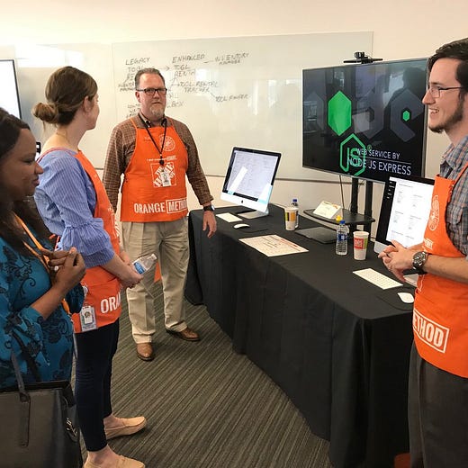 I like Home Depot, too. I think their “Orange Method*” approach to up-skilling cashiers to engage as developers is a neat model for the future of work. What if they had all of the tools that they needed to compete in a digital economy already roaming the aisles? It’s refreshing to see a large firm invest seriously in the talent of their existing workforce.