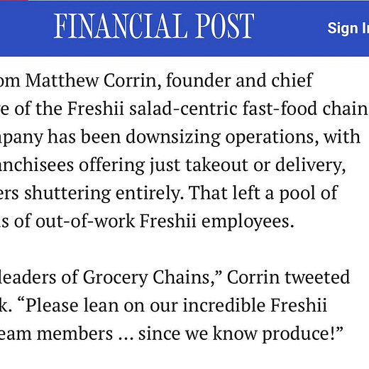 All I know is that I want to tap a screen and order a better policy response for the workers that have been displaced by this gross digital off-shoring but there doesn’t seem to be anything that I can press. This is a problem. An even bigger problem would be if the Freshii cashiers invite us to mentally ‘check out’ of better supporting workers whose labour is automated away or eagerly accepting the transition to save a few bucks at lunch.